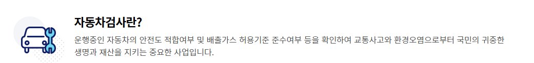 - 검사 전, 차량의 등화장치(전조등, 방향지시등, 브레이크등) 및 타이어 상태를 점검하는 것이 좋습니다.