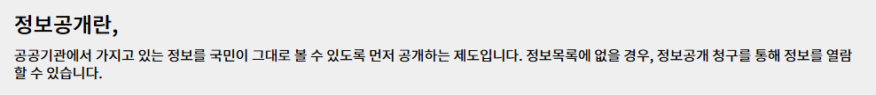 (예: "2023년 ○○시 사회복지 예산 사용 내역"처럼 시기와 범위를 명확히) - 개인정보, 국가안보, 기업 영업비밀 포함 정보는 비공개될 수 있음