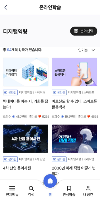 - 카테고리: 분야별 강좌 탐색 가능 (자격증, 인문학, 외국어 등)