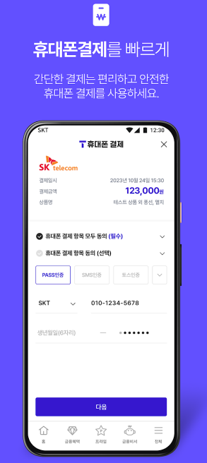 - 휴대폰 본인 인증(쇼핑, 금융, 공공기관 로그인 시)