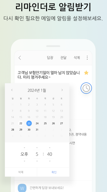 - '알림 허용' 설정하면 새 메일 수신 시 바로 푸시 알림 도착