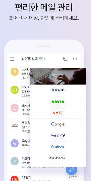 A. 푸시 알림이나 여러 계정 관리가 필요하다면 다음 메일 앱 설치도 추천합니다.