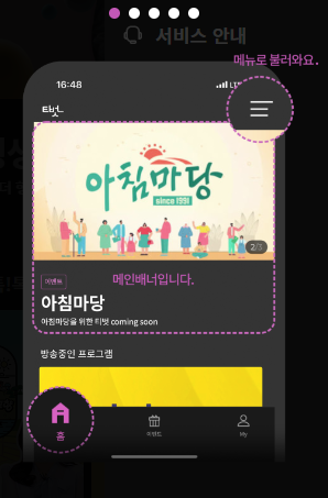- 앱 실행 후 KBS 아침마당 선택