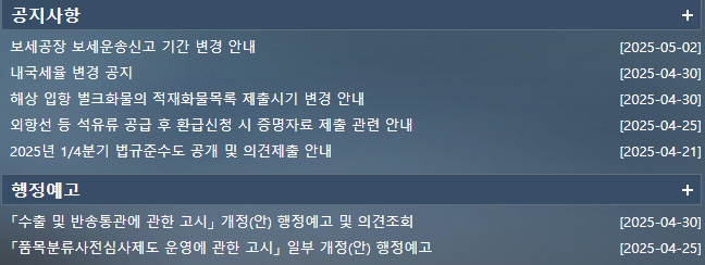 관세청에서 제공되는 유용한 콘텐츠(홈페이지, 인터넷통관포털 UNI-PASS)를 한번에 확인할 수 있는 맞춤형 통합서비스를 제공합니다.