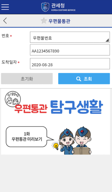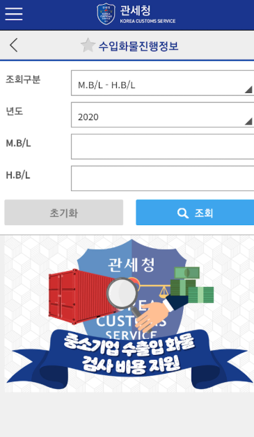 '수입통관포털 ➡ 수입화물 진행정보' 메뉴에서 운송장번호만 입력하면 바로 결과 확인