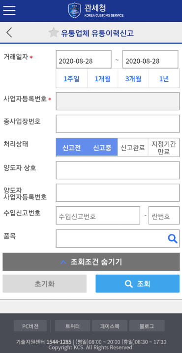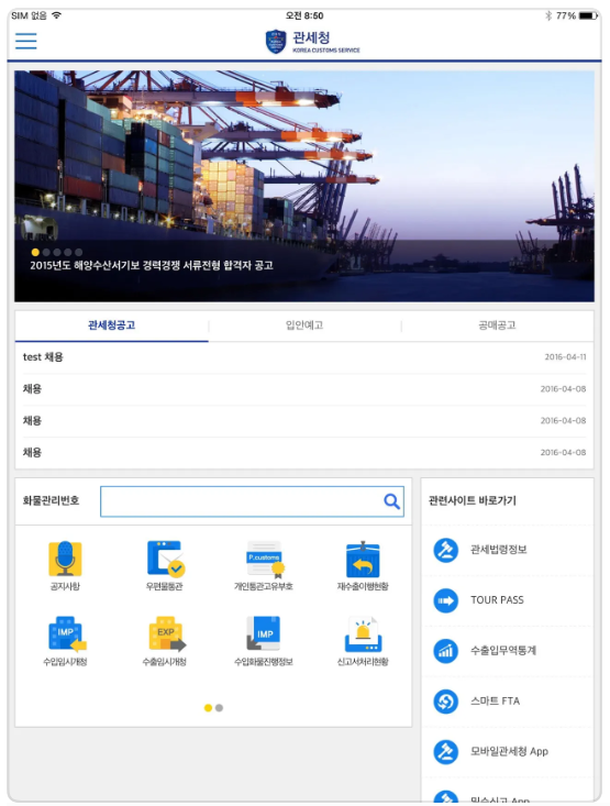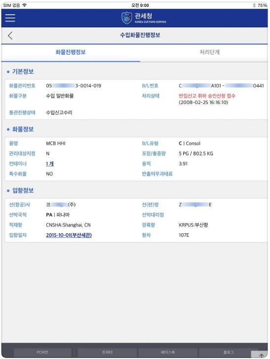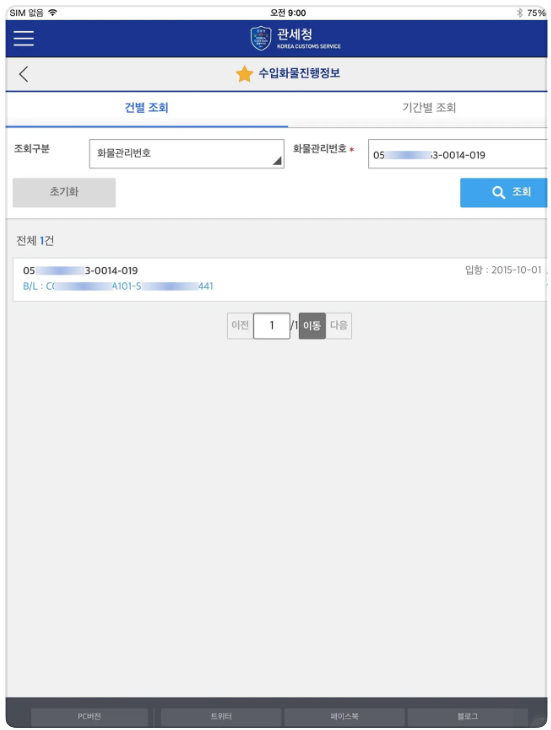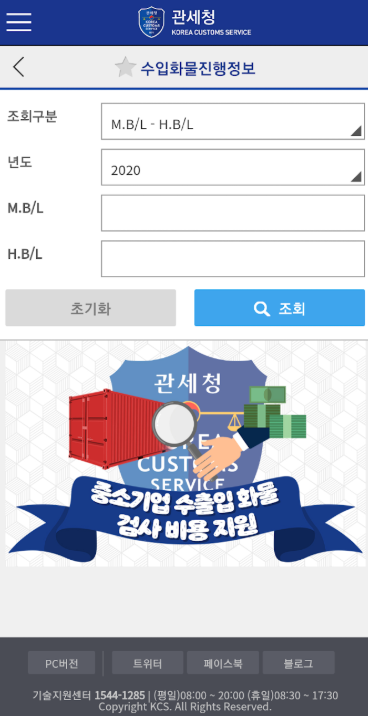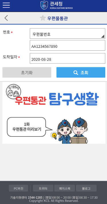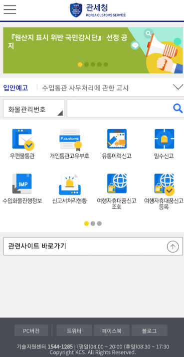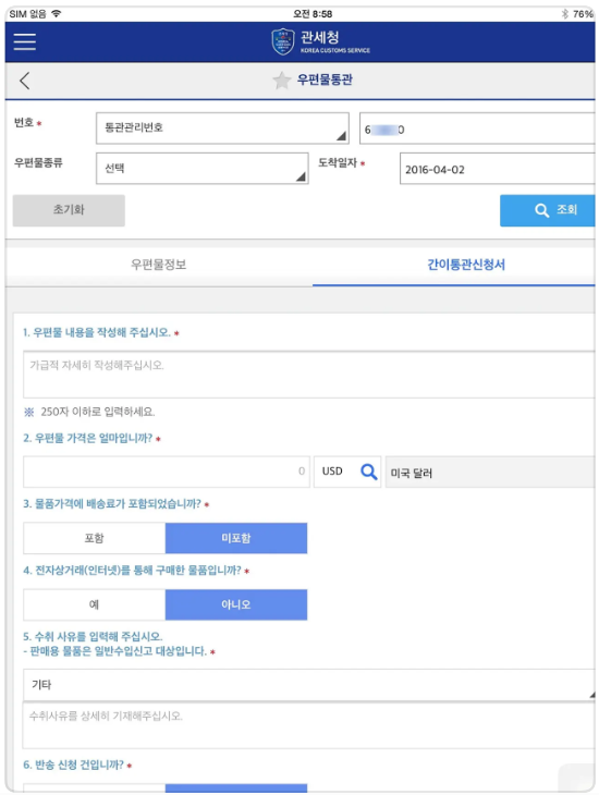 - 각종 세관 앱/홈페이지의 조회 기능 이용