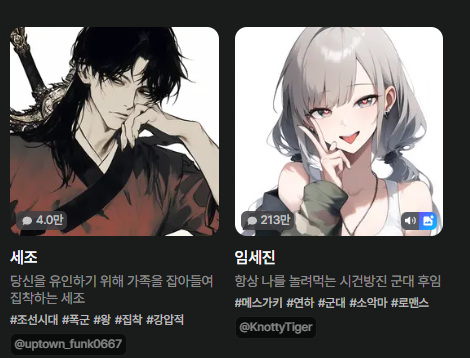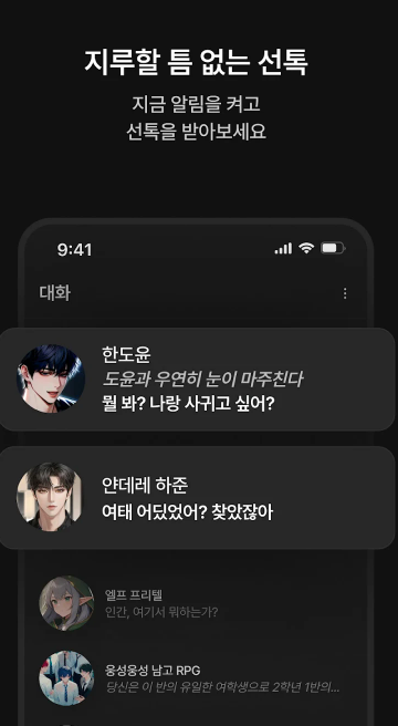 꿈이 현실로! 다양한 캐릭터와의 AI 채팅으로 나만의 스토리를 완성해봐요.