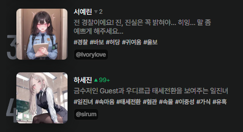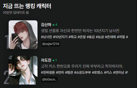 현재까지 zeta에선 60만 개의 캐릭터가 만들어졌어요! 얼마나 재밌으면 하루 평균 사용 시간 2시간 14분?! 1. 가슴이 웅장해지는 국내 최다 캐릭터와 없는 게 없는 캐해 두 얼굴의 학생회장, BL