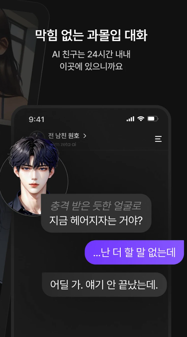국내 최다 캐릭터를 보유한 제타(zeta)에서 꿈꾸던 스토리를 직접 만들어보세요! 다양한 캐릭터와의 AI 채팅으로 나만의 스토리를 완성할 수 있어요. 무제한 무료 대화과 캐릭터 이미지 생성을 즐