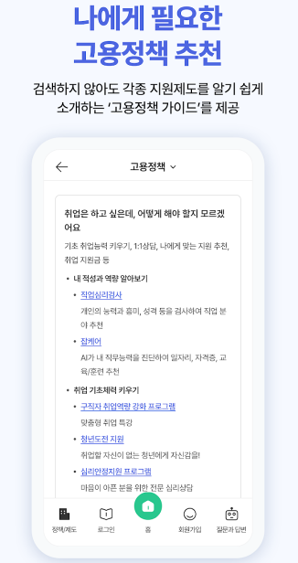 - 일자리 찾기 외에도 직업훈련, 복지지원, 창업지원 등까지 한 번에 확인 가능