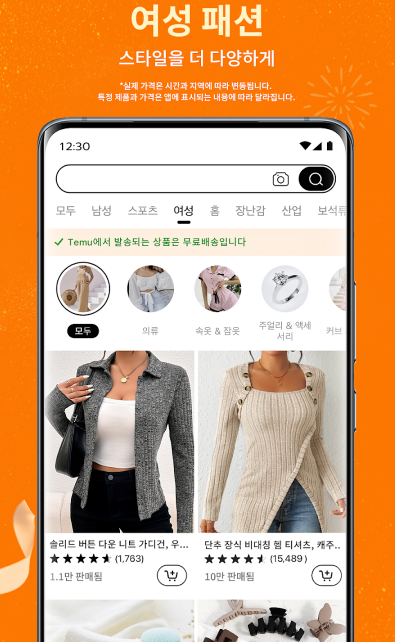 구글에 '테무' 혹은 '테무 쇼핑몰'을 검색해도 가장 상단에 공식 홈페이지가 노출된다. 사이트에 접속하면 언어가 자동으로 한국어로 설정되며, 상품 가격도 원화로 표시되어 이용이 어렵지 않다.