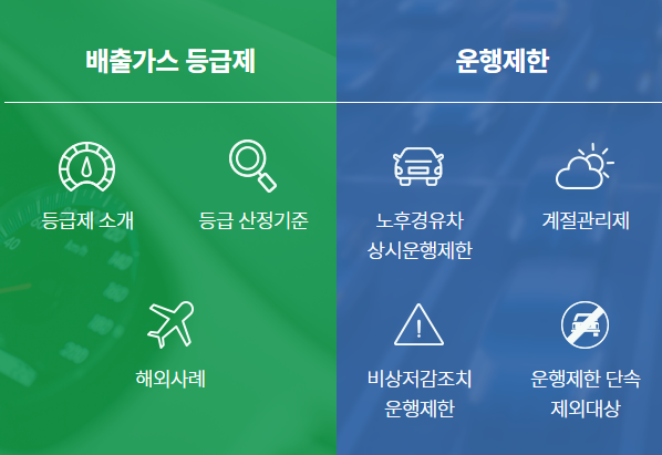 환경부는 자동차의 배출가스 등급제를 통해 차량의 환경성을 평가하고, 이를 기반으로 다양한 서비스를 제공하고 있습니다. 주요 서비스는 다음과 같습니다: